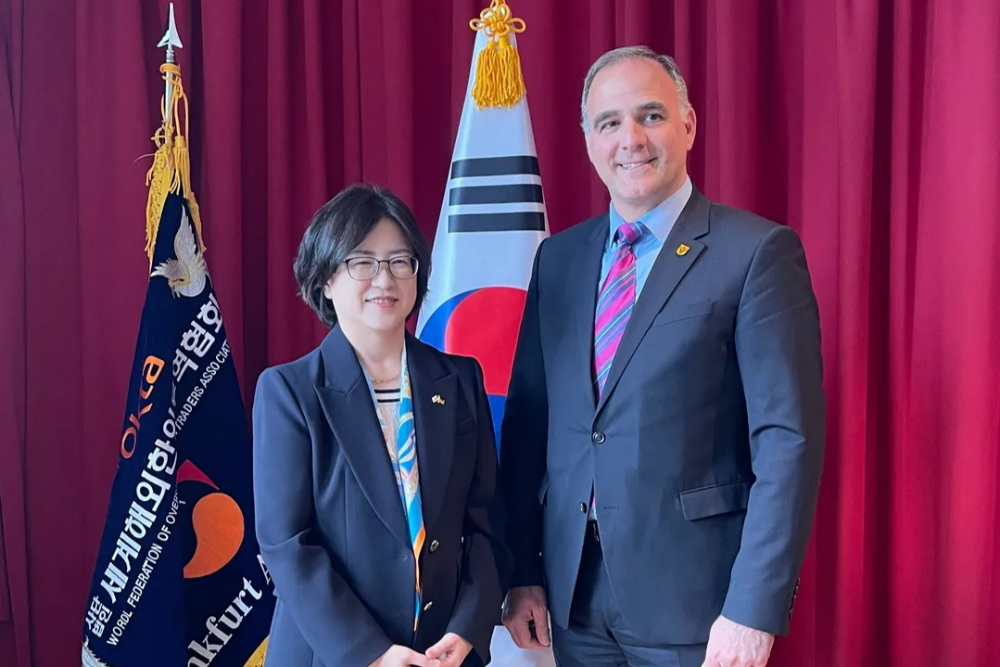 Im Rahmen der Veranstaltung führte sie Gespräche mit dem Bürgermeister Alexander Immisch, dem stellvertretenden Bürgermeister Thomas Milkowitsch sowie dem Vorsitzenden der World-OKTA Frankfurt, Herrn Ingeun Choi, und erörterte Möglichkeiten der Zusammenarbeit in den Bereichen Wirtschaft und Kultur.