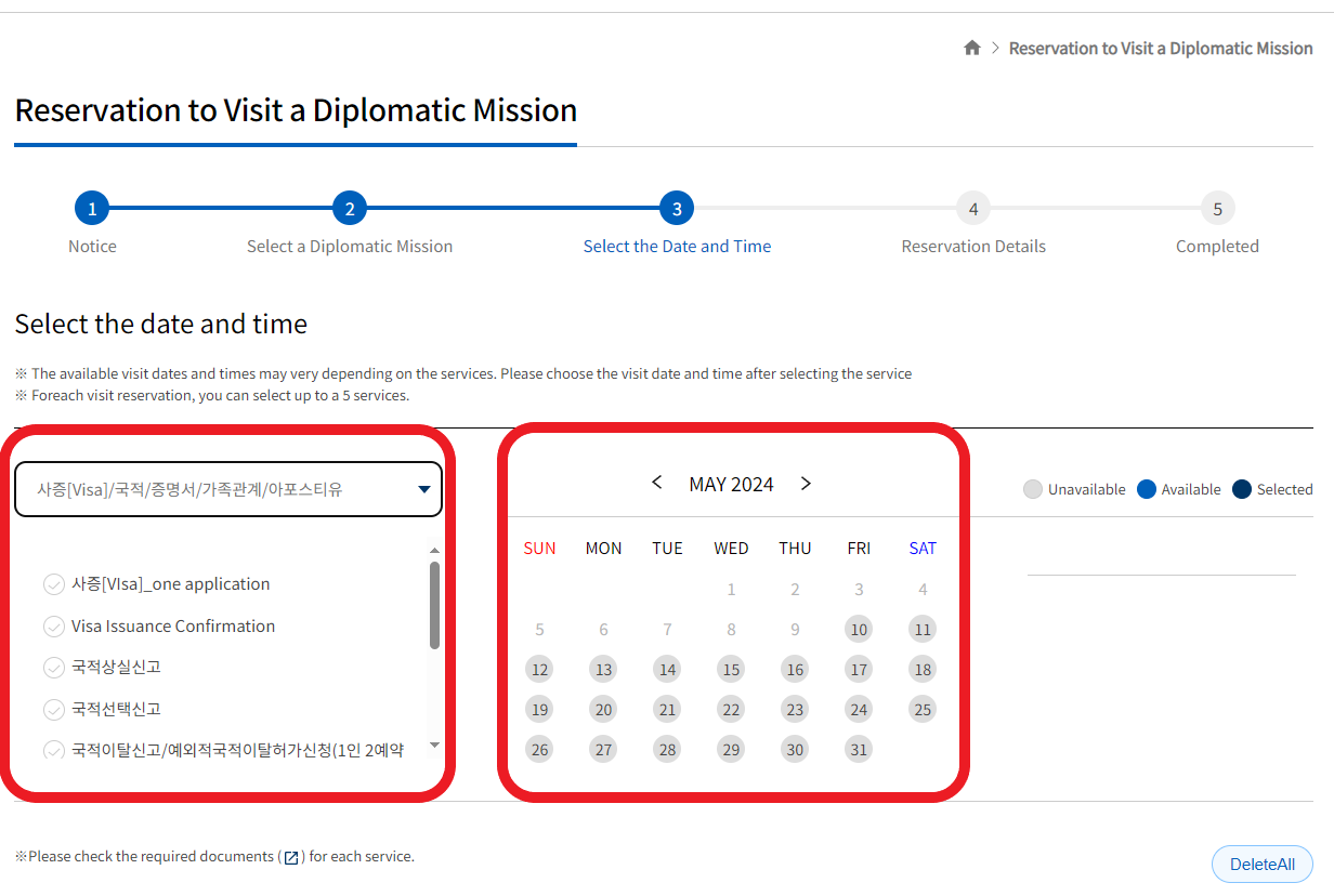 4. Bitte wählen Sie "Consulate General of the Republic of Korea in Frankfurt" aus. Danach können Sie Ihr Anliegen und Ihren Termin wählen.