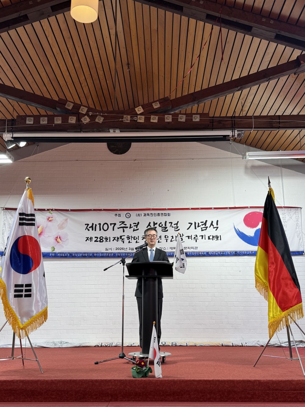 우리 대사관 임상범 대사는 에센 한인문화회관에서 개최된 제107주년 3.1절 기념식과 재독한인청소년 우리말 겨루기 대회에 참석했습니다. 임상범 대사는 대통령 기념사를 대독하고 이어지는 오찬과 우리말 겨루기 대회에 참석하여 교민들과 소통하는 한편 재독 동포 사회를 격려하는 시간을 가졌습니다.